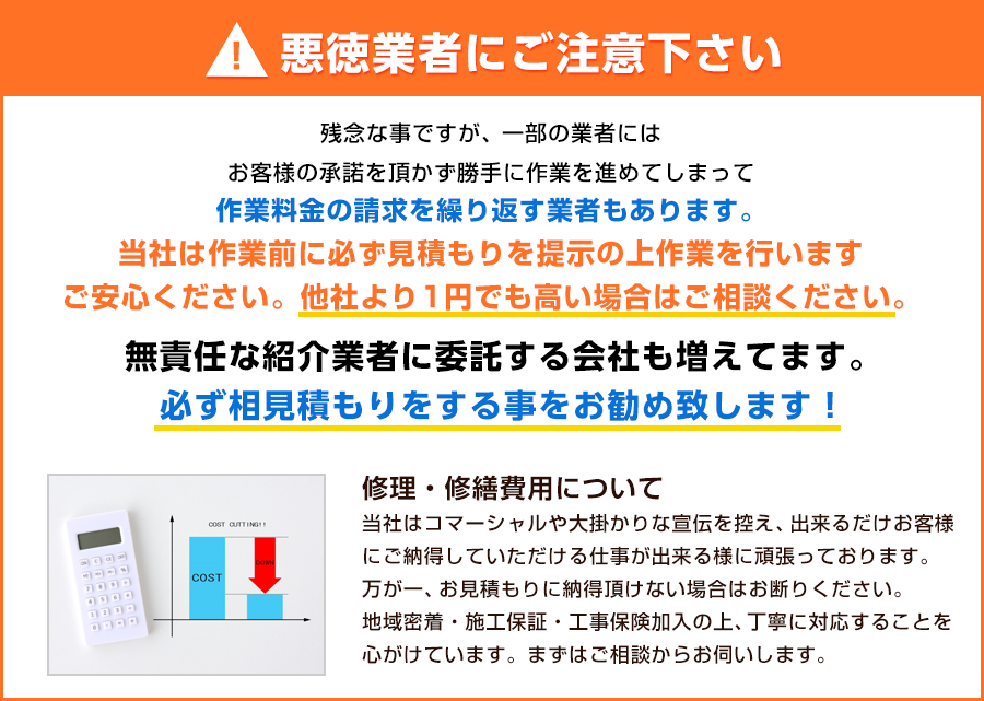はい可能です。お見積り内容にご納得いただけない場合、万が一お見積りが他社より高かった場合はご相談ください。他社に負けぬよう価格のほうも頑張ります。